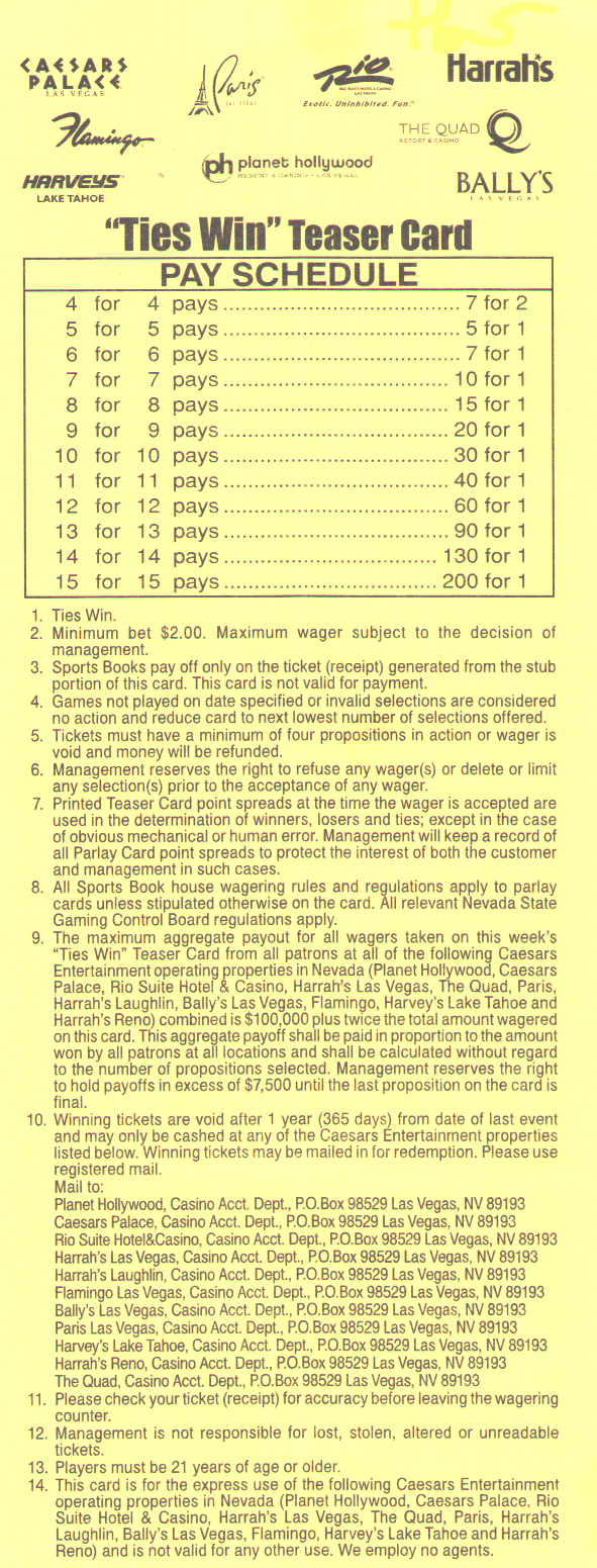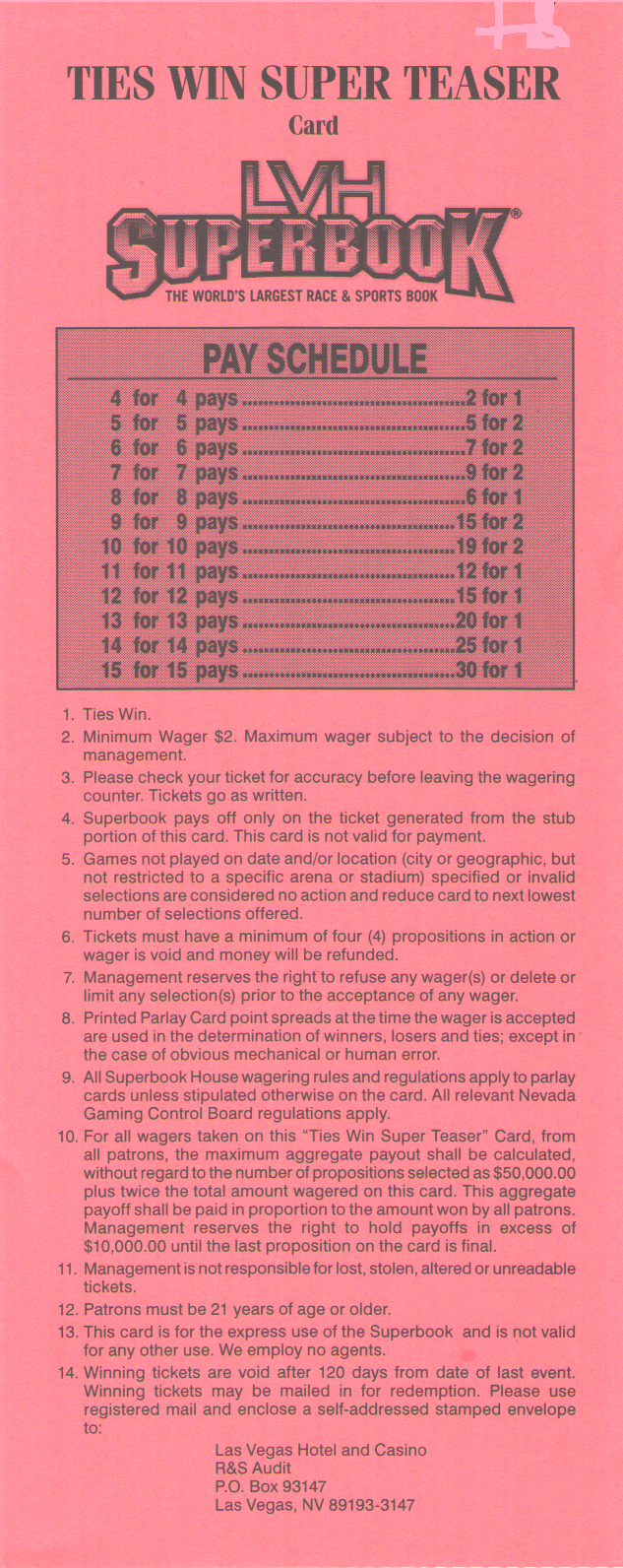 - ラスベガスのスポーツ賭博調査— 各スポーツブックファミリーがパーレーとティーザーに支払う金額。