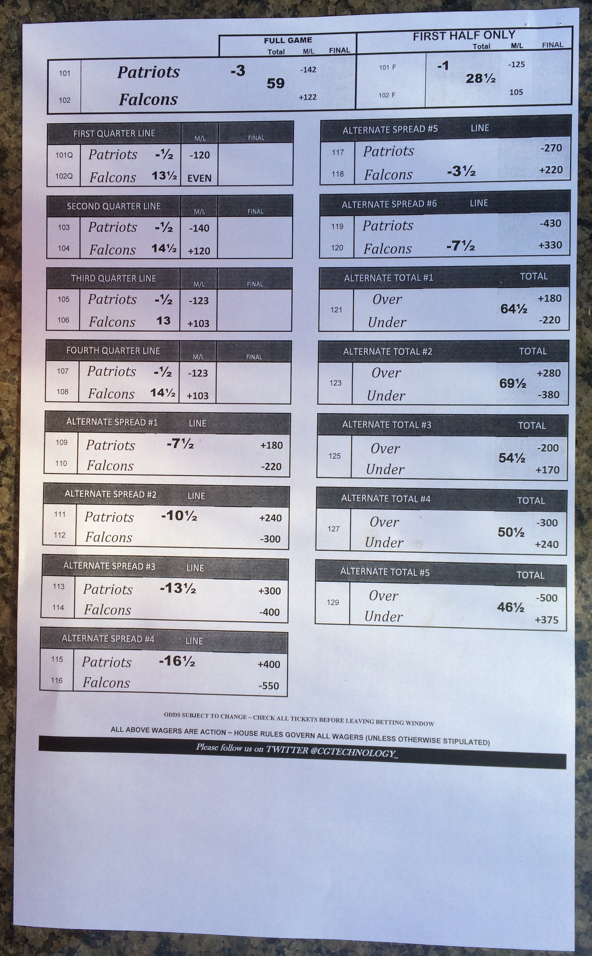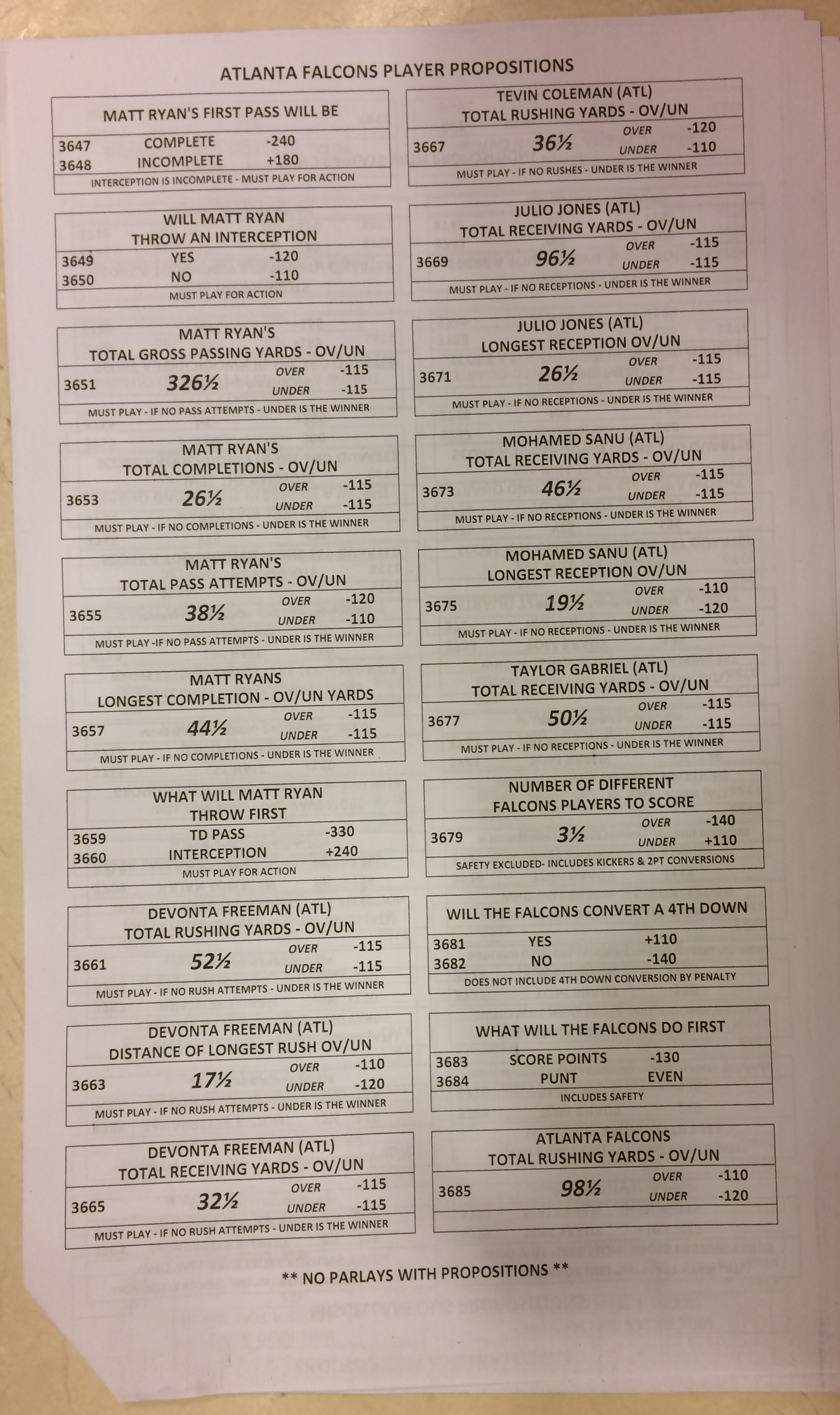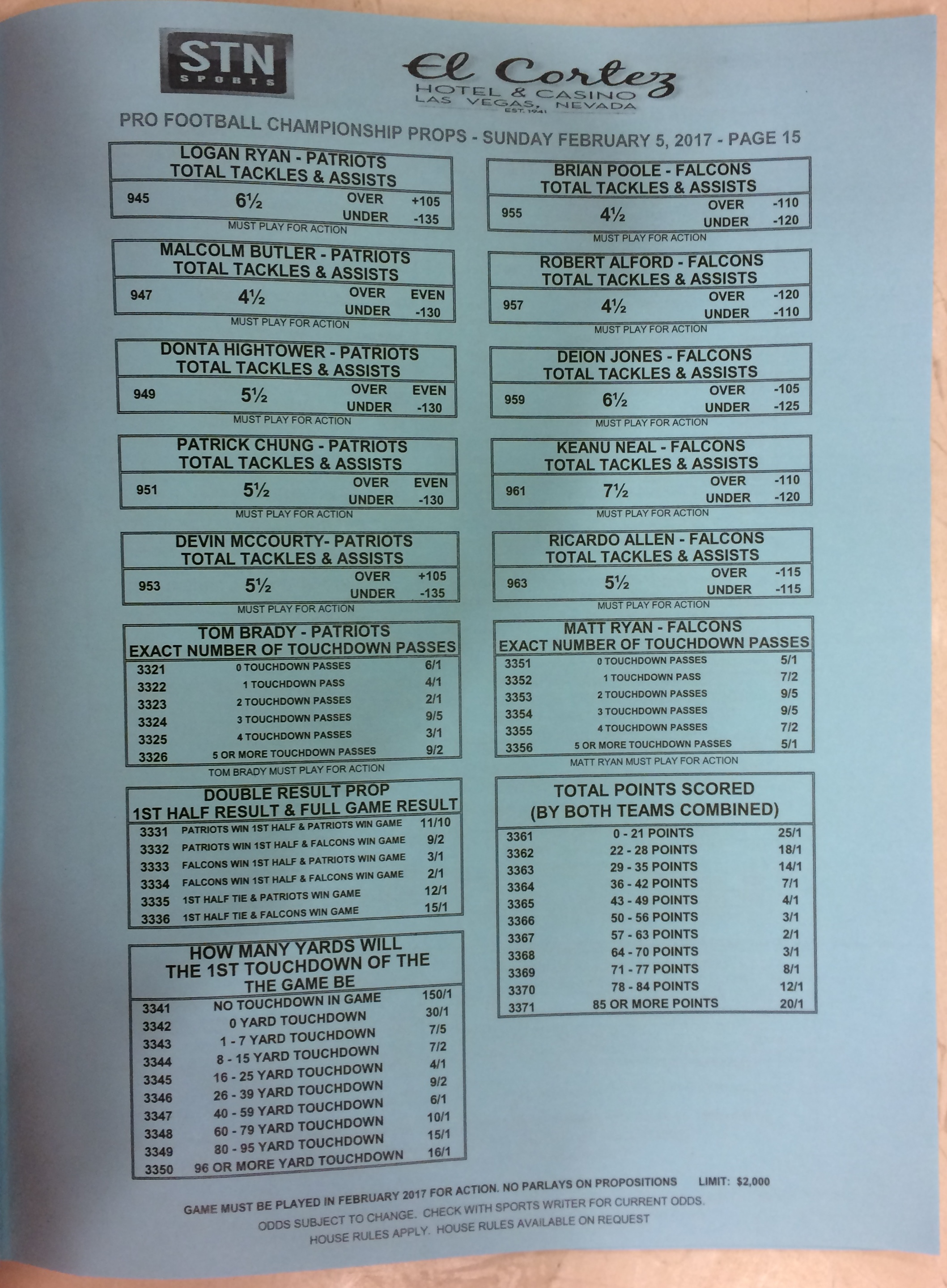 完全なリストは、Westgate Superbook の Super Bowl 51 プロップ ベットの完全なリストでもご覧いただけます。