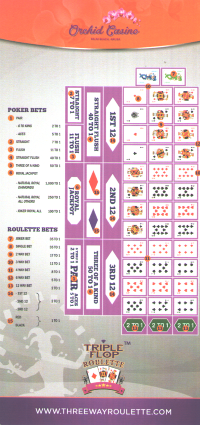 - すべてのポーカーの賭け金は、ルーレットの賭けに使用されたカードとデッキ内の次の 2 枚のカードに基づいて支払われます。