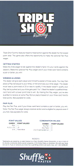 トリプルショットラミーを初めて目にしたのは、2015年のグローバルゲーミングエキスポでした。私の知る限り、カジノデビューは2016年2月11日にラスベガスのランパートカジノでした。サイドベットの変更を除けば、これは長年一部のインターネットカジノでプレイされているベガス・スリーカードラミーと同じです。ルールはスリーカードポーカーに似ていますが、ハンドの得点方法が大きく異なります。