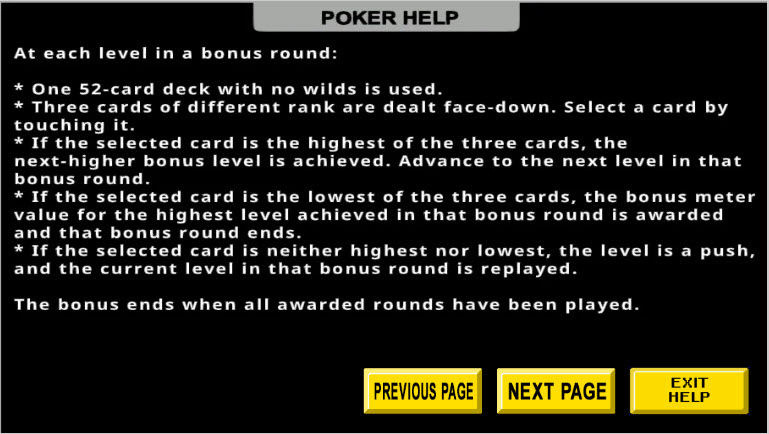 - ボーナスゲームの各レベルでは、プレイヤーはランクの異なる3枚のカードから1枚を選びます。最もランクの高いカードを選ぶことが目的です。