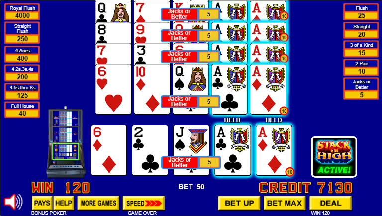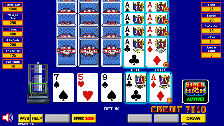 G2E で見かけ、現在はVideoPoker.comでプレイできるビデオ ポーカーのバリエーションの 1 つが Stack 'em High Poker です。