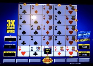 - 他のマルチプレイビデオポーカーゲームと同様に、各ハンドは別々のデッキから配られます。そのため、別々の水平ハンドである限り、同じカードが交換カードに複数回出現することがあります。