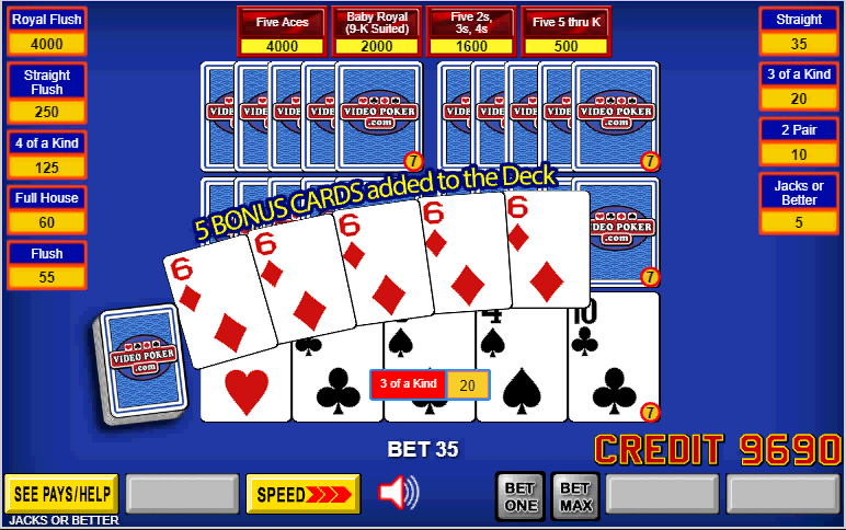 - 追加カード機能に加えて、ゲームでは、その機能を有効にすると、一部のハンドでの支払いも増加します。