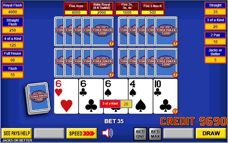 - ペイテーブルに2種類のハンドが追加されました。1つは5枚のカード、もう1つは9からキングまでのストレートフラッシュである「ベイビーロイヤル」です。