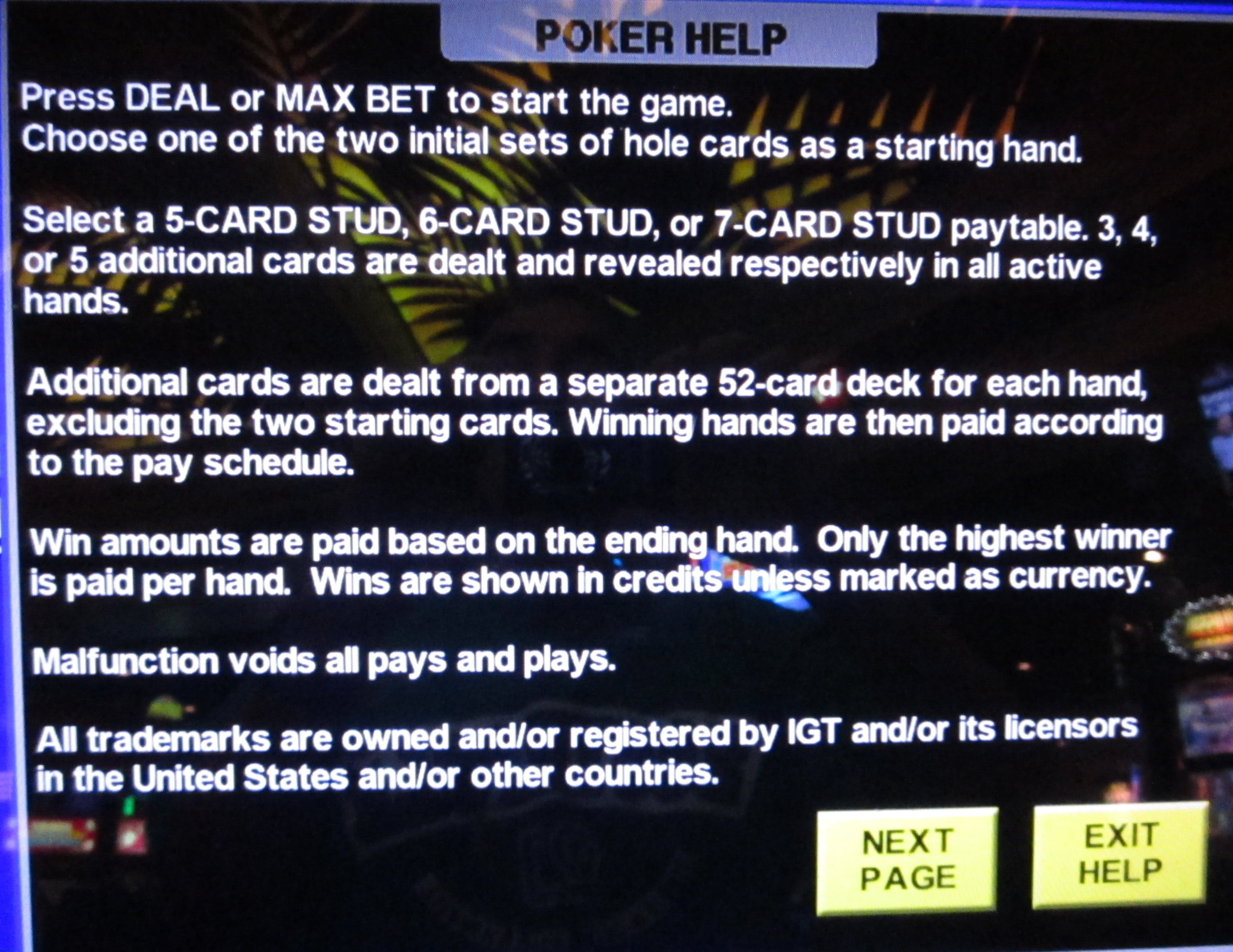 - ゲームメーカーの IGT 社 — Stud Choice Poker のペイテーブルとリターンの完全なリストを私と共有してくれました。
