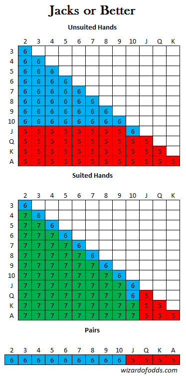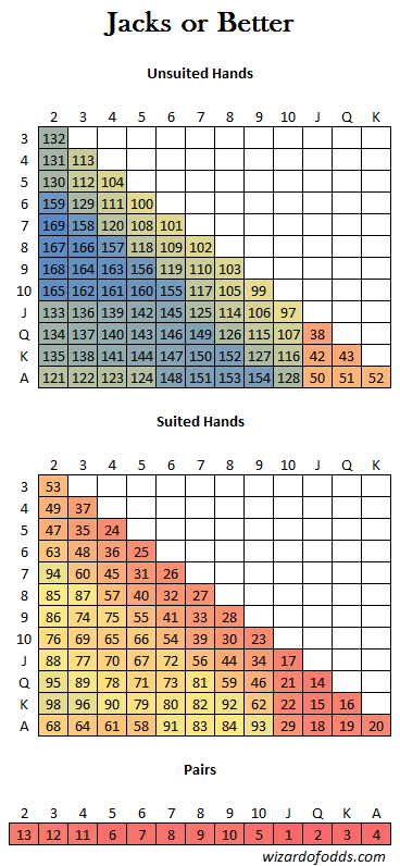 以下の戦略は、以下のペイテーブルを持つジャックス・オア・ベターゲームに適しています。勝利金は、1ハンドあたり5コインを賭けた場合のコイン1枚あたりの金額で表されます。