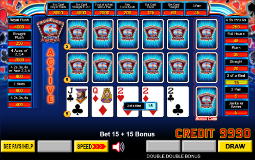 画像はVideo Poker.comの許可を得て使用しています。Super Draw 6をプレイするには、ゴールドレベルのメンバーシップが必要です。