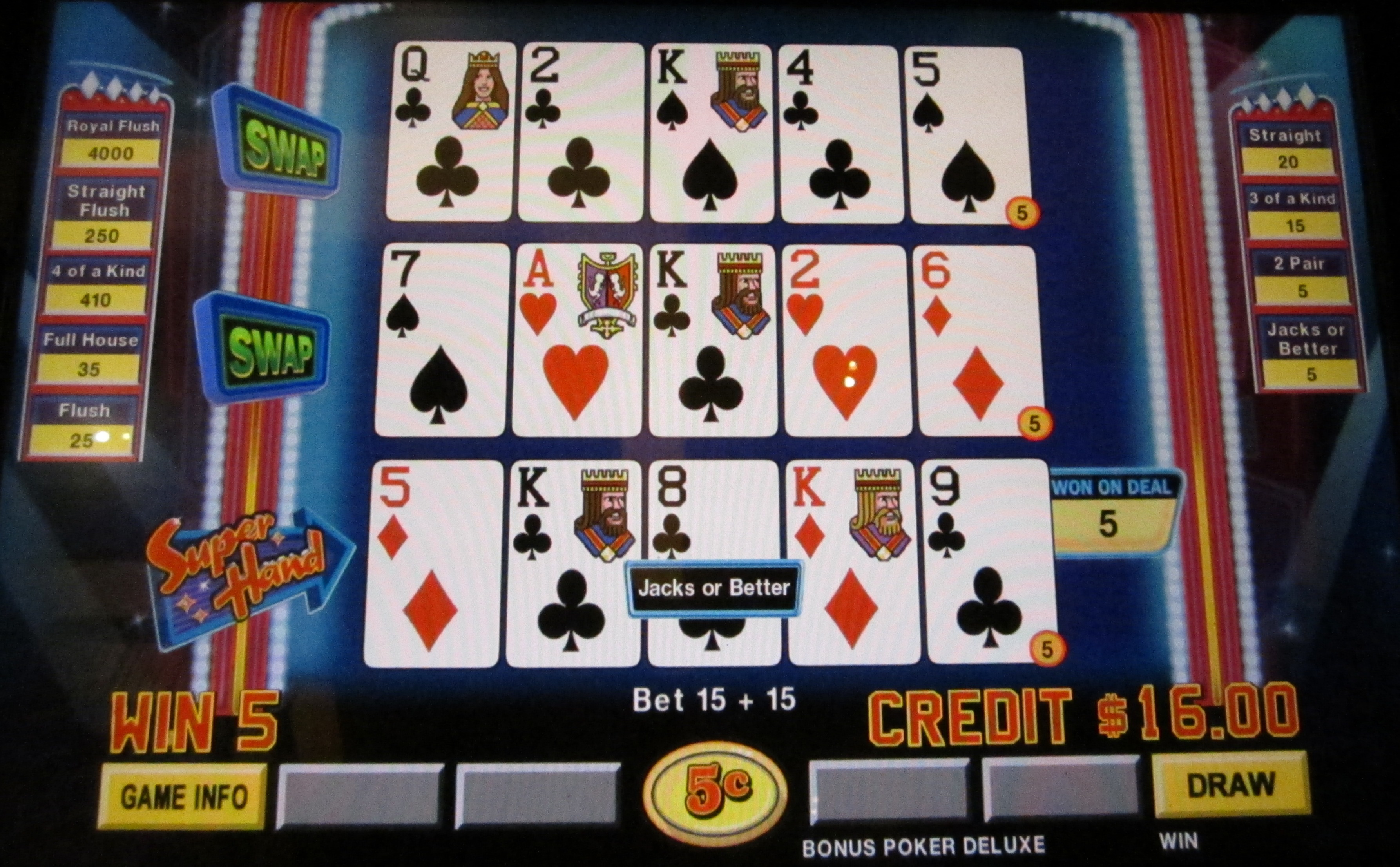 - スーパー ハンド ポーカーは、従来のトリプル プレイ ビデオ ポーカーに基づいています。