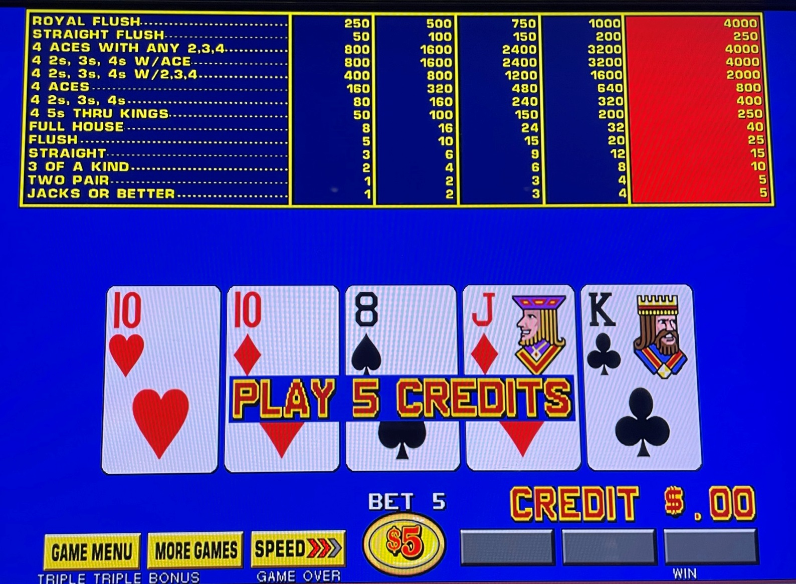 トリプルトリプルボーナスビデオポーカー