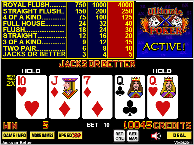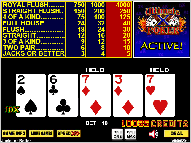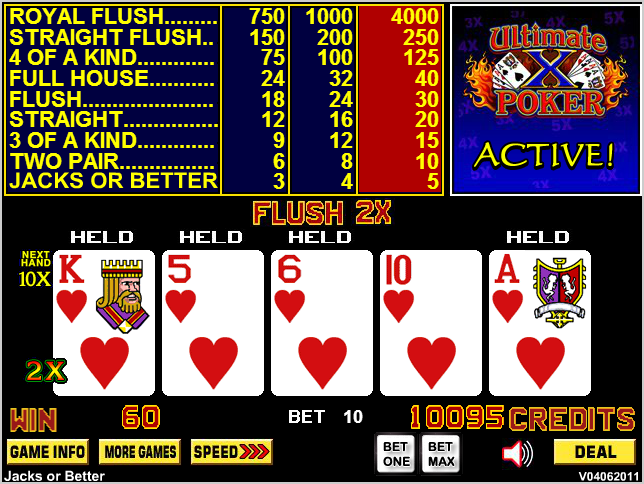 VideoPoker.comでは、非常にリアルなUltimate Xゲームをプレイできます。無料のメンバーシップが必要です。
