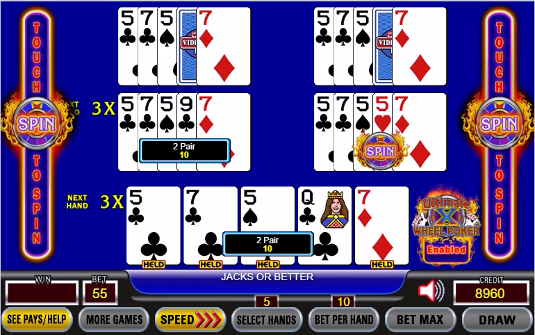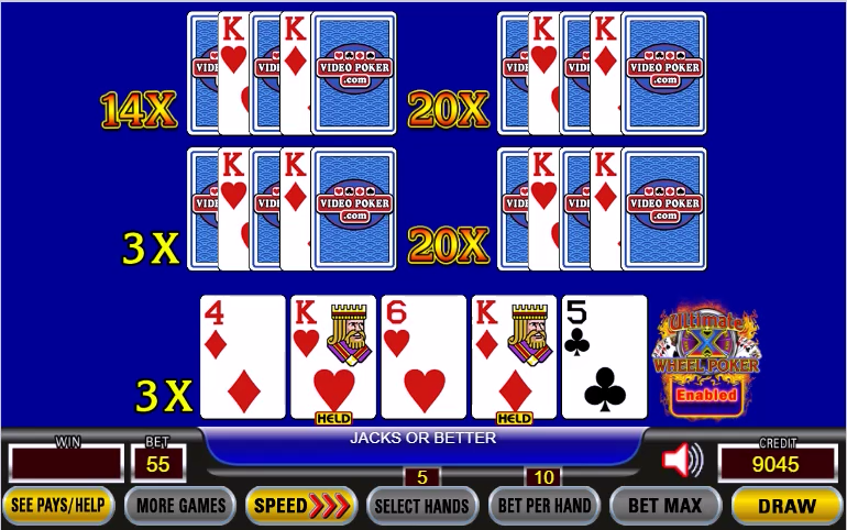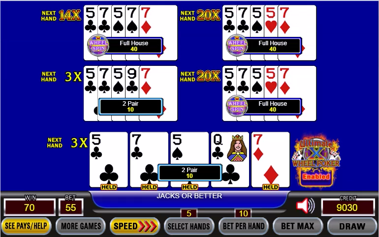 - Ultimate X Wheel Poker は、3 プレイと 5 プレイでのみご利用いただけます。