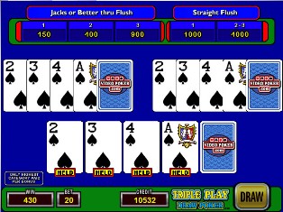 - サンプル ハンドのスクリーンショットについては、 VideoPoker.com をご覧ください。