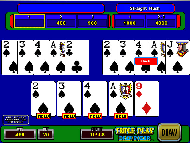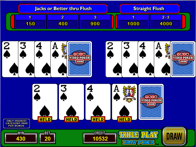- サンプル ハンドのスクリーンショットについては、 VideoPoker.com をご覧ください。
