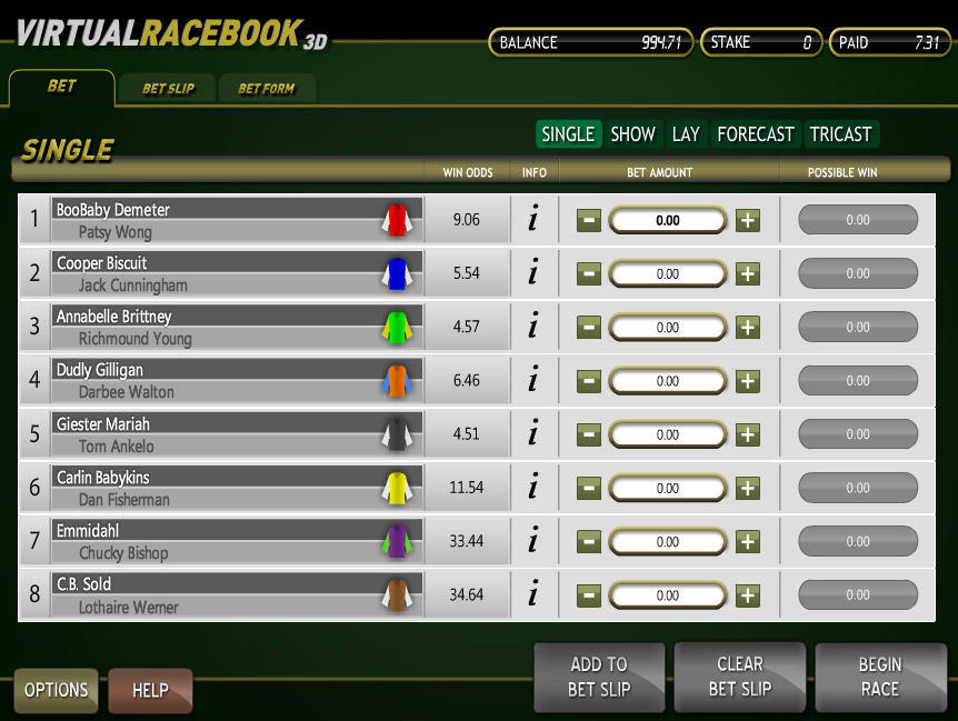 Virtual Racebookで使用されている用語は、イギリスで使用されているものとほぼ同じですが、上位3位以内に入るという表現はアメリカ式です。優勝馬の「シングル」という表現はどこから来ているのか、私にはわかりません。