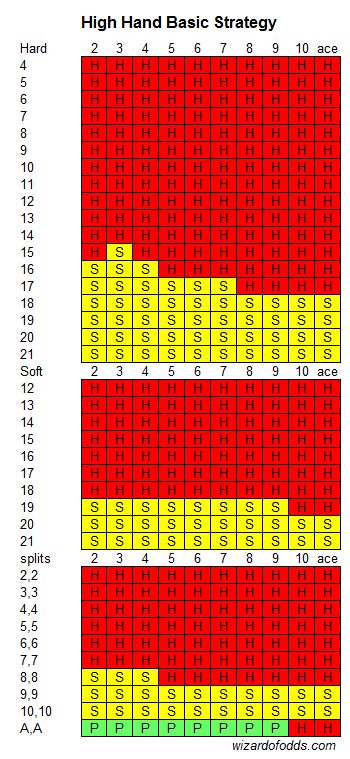 次の表はハイハンドの基本戦略を示しています。