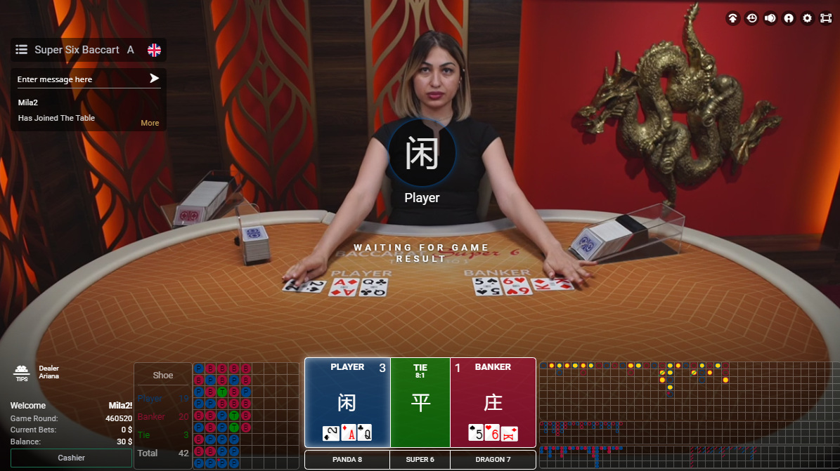 SA Gamingには、同じテーブルで従来のバカラとスーパー6バカラをプレイできる便利な機能があります。クリック1つでルールを切り替えられます。