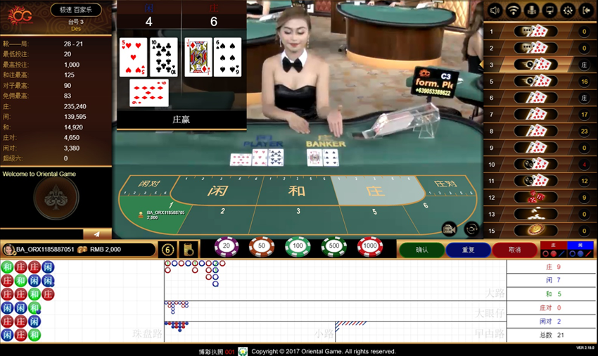 オリエンタルゲームでは、5 つの標準的な賭け方を備えた標準的なバカラ ゲームを提供しています。