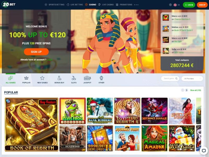 20Betカジノは、キュラソー島に拠点を置くTechSolutions Group NVが運営するオンラインベッティングサイトです。30段階のロイヤルティプログラム、豊富なスロットライブラリ、迅速な出金、そして暗号通貨のサポートを誇ります。これら全てを合わせると、プレイヤーに強くお勧めできるサイトと言えるでしょう。カジノ情報