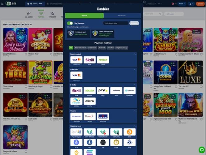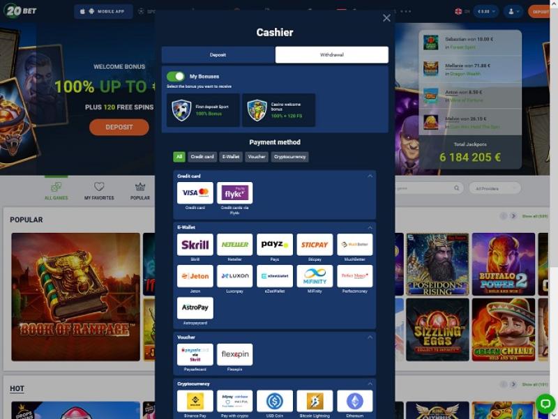利用規約は標準的であり、プレイヤーに対して不公平であったり、搾取的であったりするようなことは特にありません。以下は、入金と出金の選択肢を含む、20Bet の銀行オプションです。