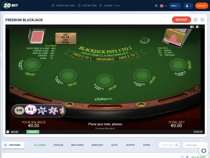 20Bet Casino Blackjack (Pragmatic Play)拡大