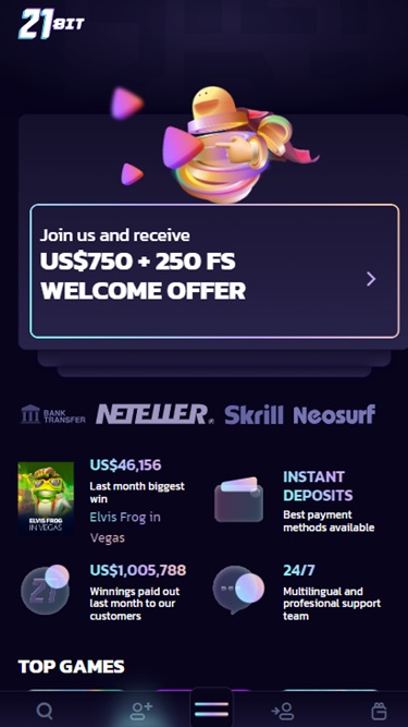 開発者たちは、あらゆる人が21bitが提供する素晴らしいエンターテイメントを楽しめるよう、このウェブサイトをスマートフォンからもアクセスできるように尽力しました。つまり、自宅でくつろぎながらでも、外出先でも、ここで時間を過ごすことができるということです。