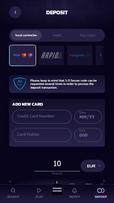 お支払い方法に関しては、様々な暗号通貨で入金いただけます。暗号通貨での入金に加え、Neteller、Visa、Mastercard、Jeton、MuchBetter、Mifinityといった人気の高い決済方法もご利用いただけます。