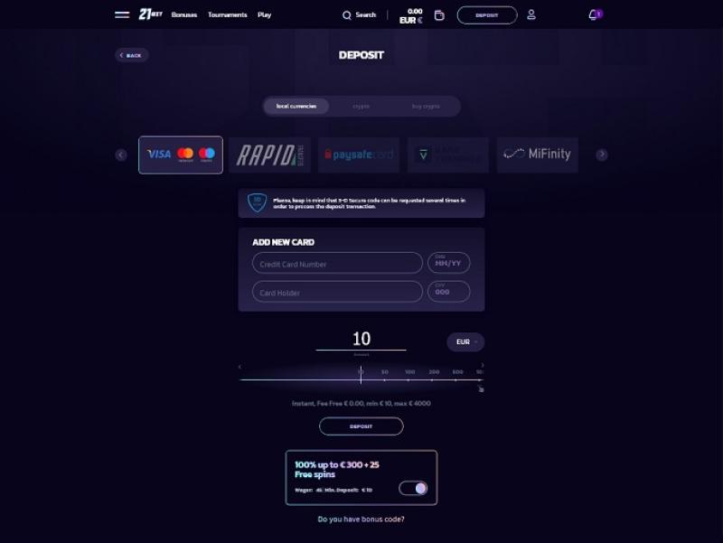 での銀行オプション 21bit Casino