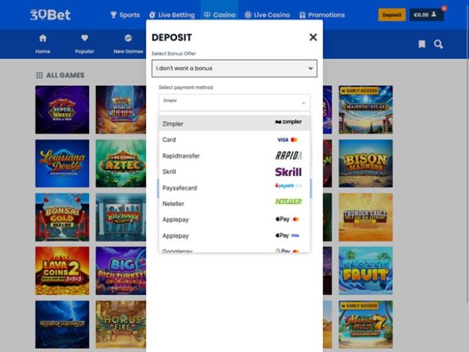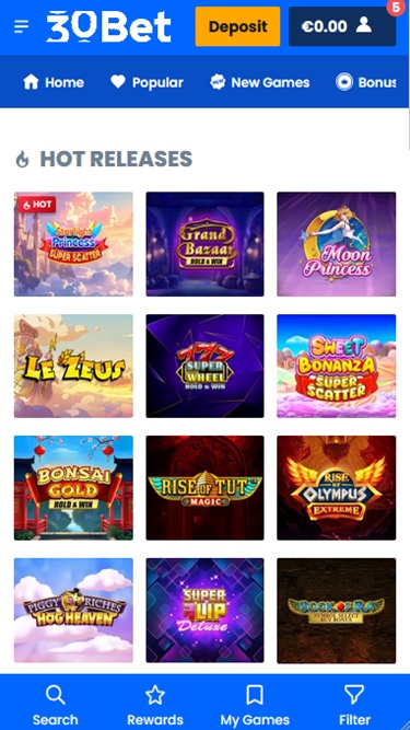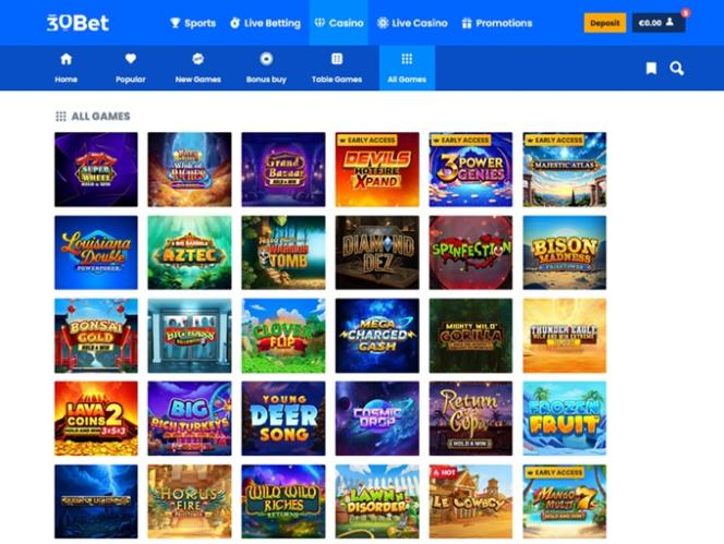 30Bet.comカジノには、数多くのオンラインスロット、豊富なインスタントゲーム、その他あらゆるジャンルのカジノゲームを取り揃えた、膨大なギャンブルライブラリが備わっています。さらに、豊富な決済オプションや魅力的なプロモーションプランなどもご用意しています。