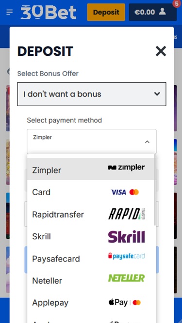 カジノの提供内容を詳しく確認する前に、 30Bet.com は画面サイズに関係なくすべてのデバイスで利用できるということも知っておきましょう。そのため、デバイスで使用しているオペレーティング システムに関係なく、携帯電話やパソコンから外出先でカジノ コンテンツを楽しむことができます。