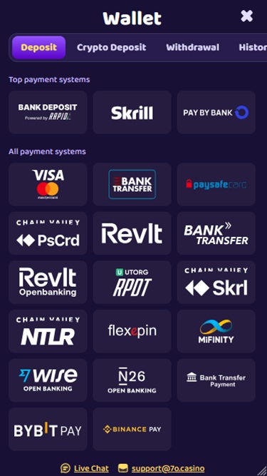 従来の銀行決済をご希望の場合は、銀行振込、一般的なデビットカードやクレジットカード、Skrill、Revolut、Neteller、Apple Pay、GPayなどの電子ウォレットなどからお選びいただけます。仮想通貨に関しては、ビットコイン、ライトコイン、ドージコイン、カルダノ、ソラナ、トロン、テザー、イーサリアム、リップルなどをご利用いただけます。