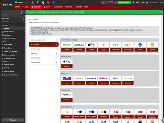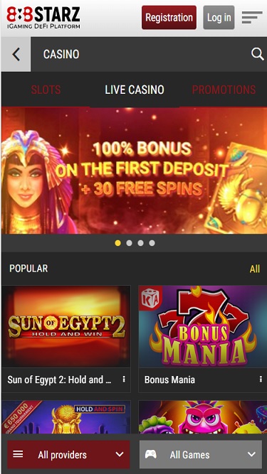 888StarzBetは、スポーツベッティング、ポーカー、ライブカジノから、豊富なスロットまで、幅広いサービスを提供しています。この運営会社が何よりも誇りにしているのは、非常に人気の高いDeFi機能(マイニング、ステーキング、ファーミングなど)と888トークンを活用した統合型報酬システムです。