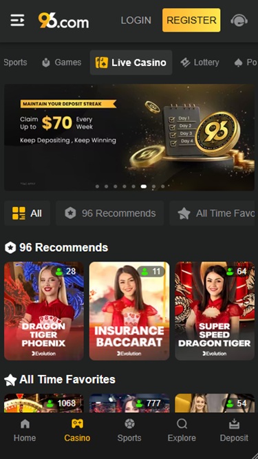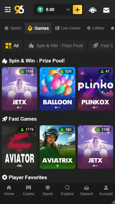 96.com Casino 同様にホームです 90以下にリストされているその他のゲーム:
