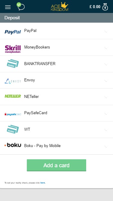 AceKingdom Casino は現在コンプポイントを提供していません。