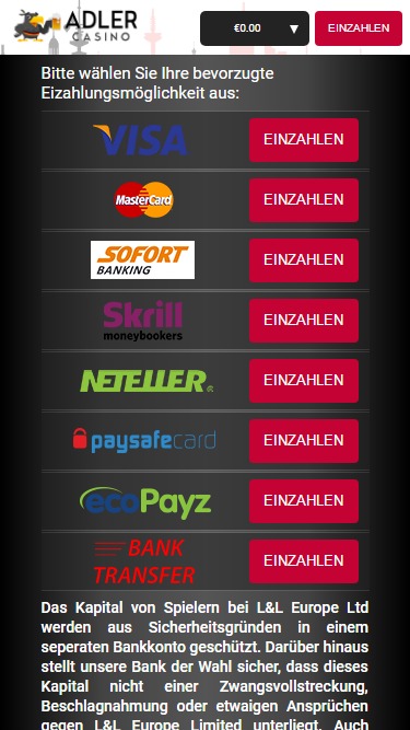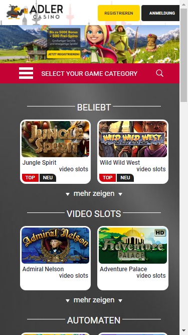 Adler Casinoは Microgaming, Net Entertainment, Amatic Industries, Barcrest, Big Time Gaming, Thunderkick, Games Global, Bally Technologies, Blueprint Gaming, NextGen, WMS and Scientific Gamesを採用しており、ゲームはウェブベースのインスタントプレイプラットフォームを通じて提供されています。また、スマートフォンやタブレットでプレイしたい方のために、モバイルサイトも提供しています。