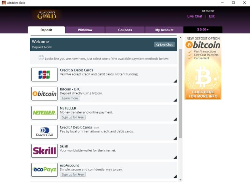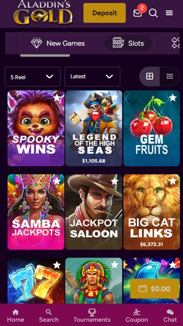 Aladdin's Gold Casinoのゲームは、 Real Time Gaming and Spinlogic Gaming (RTG) のみを使用しています。RTGは、高速動作とユーザーフレンドリーな操作性で定評のあるソフトウェアです。1998年から運営されており、このソフトウェアを導入しているカジノはボーナスが充実している傾向があります。このソフトウェアはダウンロード版とフラッシュ版の2種類があり、それぞれスロット、テーブルゲーム、ビデオポーカーなど、幅広いゲームオプションを備えています。RTGのシステムは、Technical Systems Testing (TST) によって公平性とランダム性について継続的にテストされています。