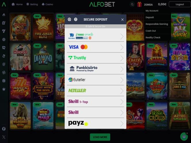 Alfobetは、リアルマネースロット、ライブディーラー、インスタントクラッシュゲーム、伝統的なテーブルゲームなど、充実したカジノゲームのラインナップを誇る、総合的なオンラインカジノ兼ギャンブルサイトです。カナダ、ニュージーランド、フィンランド、アイルランドのプレイヤーを受け入れており、豊富なゲームオプションに加え、スポーツやeスポーツベッティング専用のスポーツブックを提供することを目指しています。
