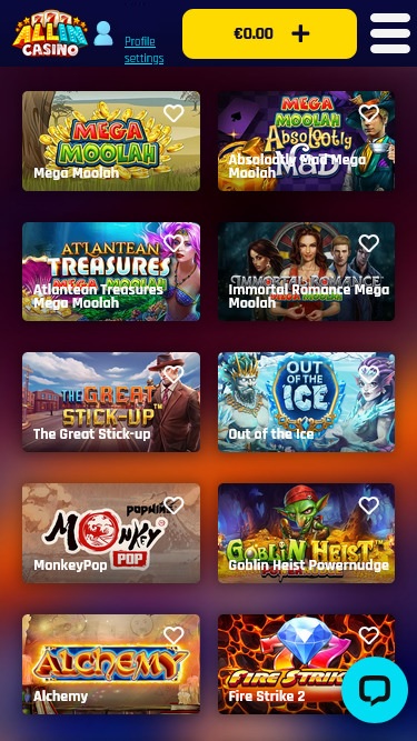 All In Casino には、Evolution Gaming、NetEnt、 Relax Gaming 、Quickspin などの iGaming 大手が制作した人気のオンライン カジノ タイトルが満載の魅力的なギャンブル ロビーがあります。