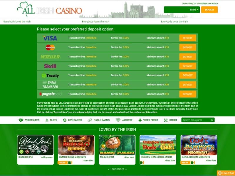 All Irish Casino は Microgaming, Net Entertainment, Amatic Industries, Barcrest, Big Time Gaming, Thunderkick, Games Global, Bally Technologies, Blueprint Gaming, NextGen, WMS and Scientific Gamesによって運営されており、そのゲームは Web ベースのプラットフォームとモバイル サイトを通じて提供されます。Blackjack