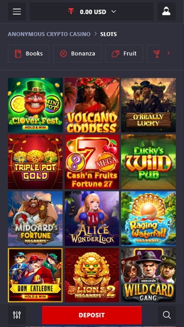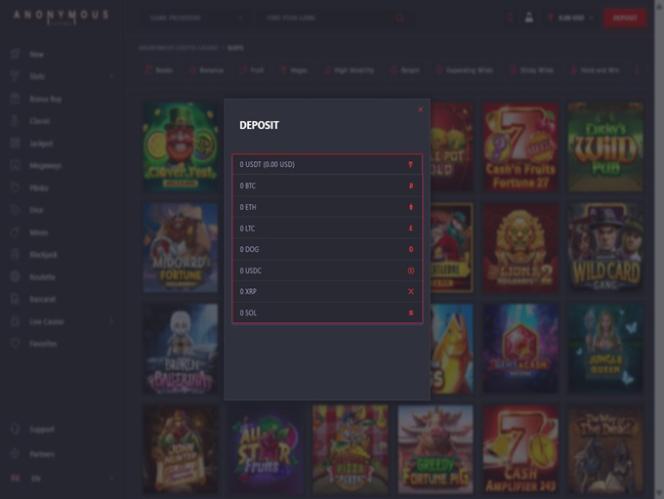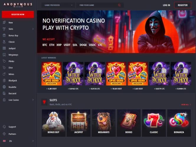 Anonymousは仮想通貨のみで認証不要のカジノで、ご想像の通り、登録手続きはこれ以上簡単なものはありません。カジノのメンバーになるには、メールアドレスを入力し、パスワードを設定するだけで、ほんの少しお時間を割くだけで済みます。プレイヤーダッシュボードにアクセスすると、操作が非常に分かりやすく、すぐに使いこなせるようになるはずです。