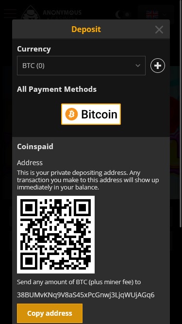 Anonymous Casinoのウェブサイトには責任あるゲーミングに関するページが見当たりません。これは残念です。すべてのカジノには、顧客にこの情報を提供する社会的責任があると考えているからです。カジノの経営陣は今後、この点を改善すべきです。