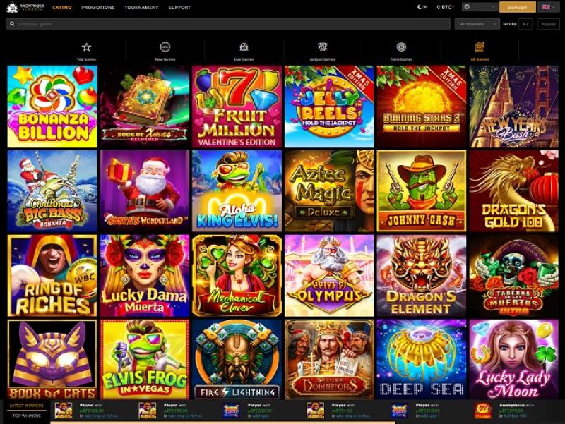 Anonymous Casinoには豊富なスロットゲームがあり、このレビューの公開時点で約450種類ものゲームが提供されています。Habanero、Booming Games、Endorphina、Mr Slottyなどのゲームも含まれています。多くのタイトルはモバイルスロットに対応しており、プログレッシブジャックポットも獲得可能です。