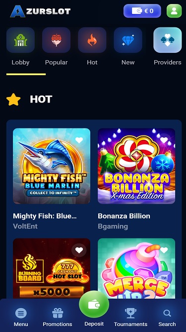 AzurSlotのゲームコレクションは、Evolution Gaming、Microgaming、Quickspin、Relax Gamingといった評判の高いブランドや、その他多くのゲームスタジオによって提供されています。お気に入りのコンテンツだけでなく、コレクションに定期的に追加される新しいゲームもぜひチェックしてください。