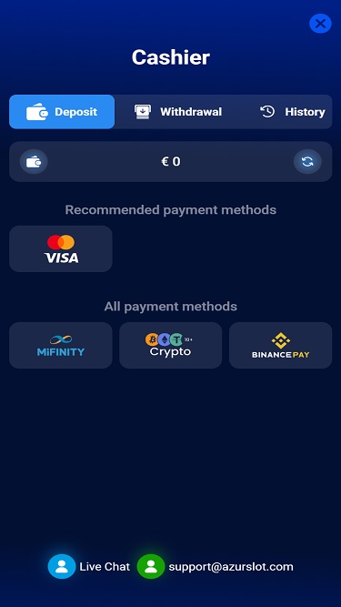 AzurSlotカジノのメンバーになり、膨大なゲームライブラリにアクセスするには、通常のサインアップ情報を入力して登録手続きを完了する必要があります。または、既存のGoogleアカウントを使って直接ログインすることもできます。AzurSlotはVPN対応なので、 VPNの使用でブロックされる心配はありません。