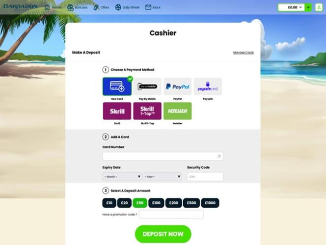 バルバドスカジノは、2017年に設立され、Absolute Marketing Solutionsによって運営されているオンラインベッティングサイトです。トロピカルな雰囲気を醸し出すこのカジノは、充実したゲームラインナップ、魅力的なボーナス条件、そして勝利金の出金までのスムーズな時間を実現しています。これらの要素が相まって、プレイヤーの皆様に自信を持っておすすめできるカジノとなっています。