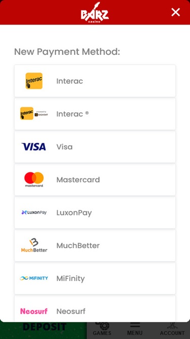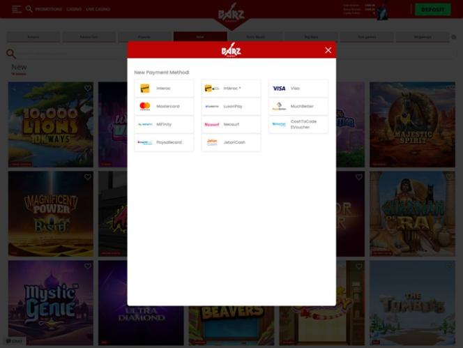 以下は、Barz Casino が提供する利用可能な支払い方法のリストです。