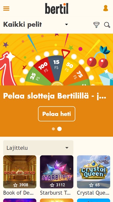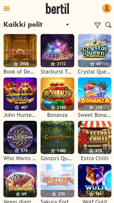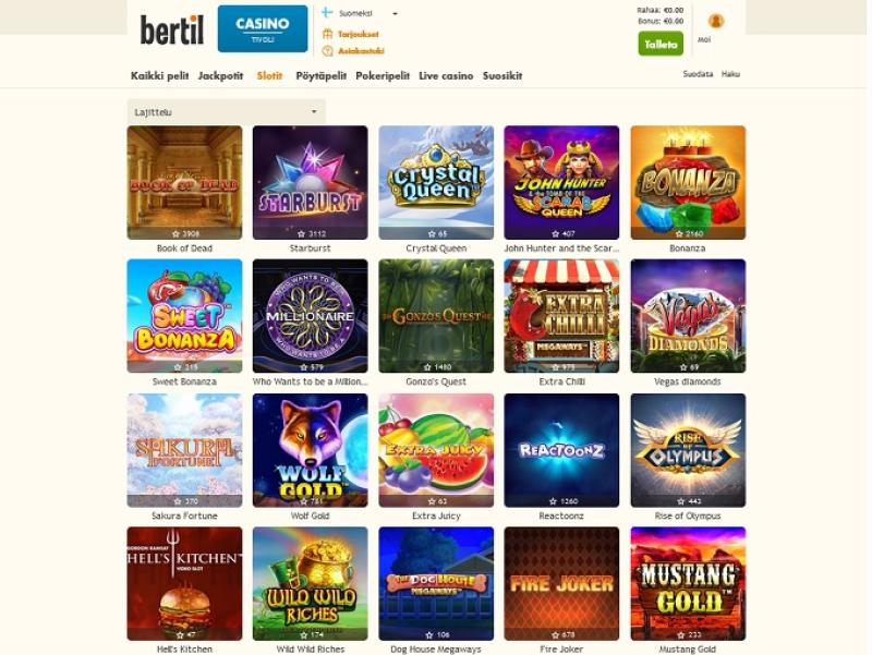 Bertil Casinoは Microgaming, Net Entertainment, 1x2gaming, Barcrest, Big Time Gaming, ELK Studios, Evolution Gaming, Novomatic, Oryx, Play'n GO, playson, Quickspin, Rabcat, Relax Gaming, Thunderkick, Yggdrasil, Wazdan, Realistic Games, Stakelogic, Pragmatic Play, Nolimit City, Felt Gaming, Red Tiger Gaming, Fantasma Games, Kalamba, Triple Edge Studios, Northern Lights Gaming, Stormcraft Studios, Electric Elephant Games, Bulletproof Games, Gluck Games, Gameburger Studios, Neon Valley Studios, SpinPlay Games, GONG Gaming, Buck Stakes Entertainment, Games Global, 2by2 Gaming, Blueprint Gaming, Greentube, NextGen, Push Gaming, WMS, SG Interactive, Gamomat, Red7Mobile, Scientific Games, Side City Studios, Reel Time Gaming, Iron Dog Studio, Foxium, Betdigital, Just For The Win, Reflex Gaming, Storm Gaming Technology, Wild Streak Gaming, Slingshot Studios, Fortune Factory Studios, STHLM Gaming, 4ThePlayer, AvatarUX, Gamevy, Crazy Tooth Studio, High 5 Games, ReelPlay, Alchemy Gaming, BB Games, Snowborn Games, Boomerang Studios, Hacksaw Gaming, Max Win Gaming, Bang Bang Games, Peter And Sons, Eurostar Studios, Aurum Signature Studios and Lucksome Gamingを採用しており、豊富なゲームライブラリにウェブブラウザから直接アクセスできます。タブレットやスマートフォンでプレイしたい方のために、モバイルサイトもご用意しています。