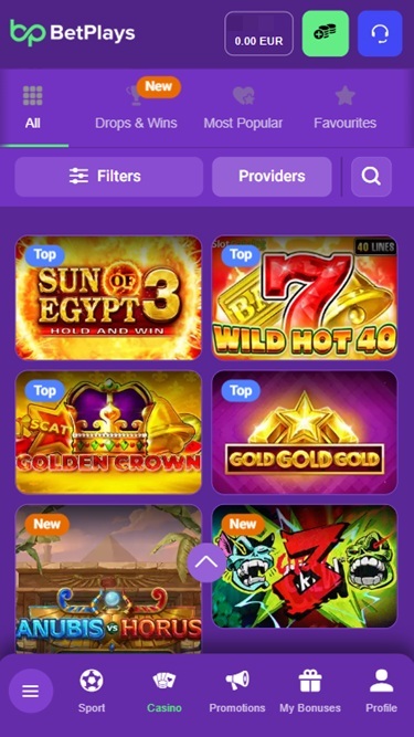 Bet Plays は、Evolution Gaming、Ezugi、Booming Games などの優れたカジノ ソフトウェア サプライヤーと提携しています。