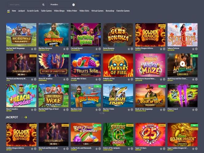 おすすめのビデオスロットをいくつかご紹介します:Big Bad Wolf Megaways、Big Bass Bonanza、Carnival Queen、Gems Bonanza、Golden Dragon Inferno、Sakura Fortune、Sherlock and Moriarty、Story Of Jarptitsa、3 Fruits Win 10 lines、9 Masks of Fire、Adventures Beyond Wonderland Magical Maze…
