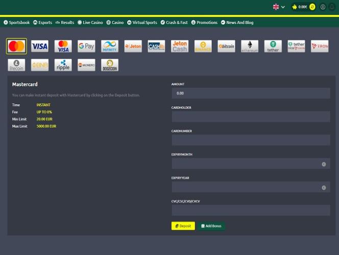 カジノのキャッシャーは、直接の銀行電信送金、よく知られた入金およびクレジットカード決済、Skrill や Neteller などの広く使用されている電子ウォレット、その他のオンライン決済システムなど、多数の決済オプションをサポートしています。